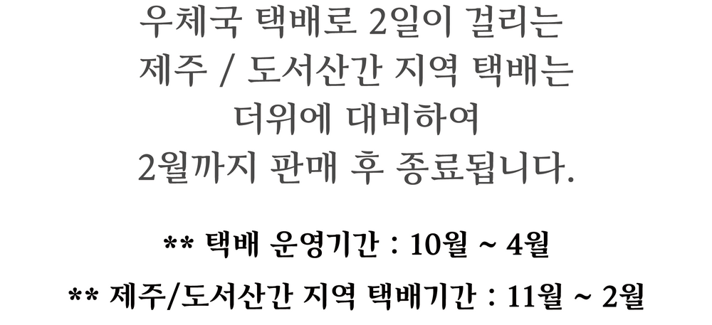 택배 배송은 지정된 일자에 일괄 발송합니다 - 바로 배송하는 형식이 아니므로 발송 일자를 잘 확인하셔서 예약 부탁드립니다.